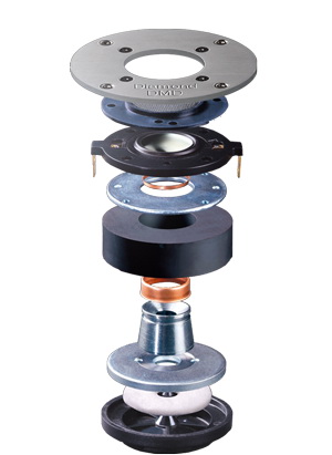 Il catalogo dei diffusori è numeroso e possiamo divederlo in una linea no compromise e una dalle linee più tradizionali e costi decisamente invitanti. La linea superiore comprende l’ammiraglia Grand Tower, alta 184 cm e un array di altoparlanti distribuiti in tre moduli distinti e accoppiati tra loro da materiale smorzante, in una configurazione d’Appolito, messa in fase del modulo dei medio-alti, tweeter Diamond DMD, 2 md 17,5cm e 2 Wf della Eton da 27,5 cm per una risposta in frequenza estesa per tutta la banda udibile. Gli altri modelli della linea superiore discendono dall’ammiraglia scalando gradualmente nei componenti utilizzati e nelle dimensioni ma non nella qualità sino all’unico modello da piedistallo, il Dancer Mini-X, con medesimo tweeter DMD e midwoofer proprietario. La fascia “tradizionale” è suddivisa in tre linee, P, V e S è costituita da modelli di forme più semplici e altoparlanti meno sofisticati, comunque di propria fabbricazione. Costruzione semplice ma sempre curata.