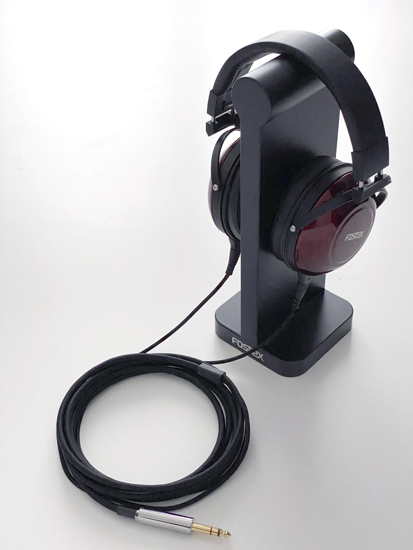 Il cavo è da 3 metri, ormai quasi uno standard, ed è rimovibile. Da un capo ha un jack da 6,3mm sbilanciato stereo dorato e verso le cuffie dei connettori pin a due poli rodiati. Disponibile e acquistabile a parte il cavo con connettore bilanciato XLR e identiche finiture terminali. La guaina esterna del cavo è tessile e non plastica, credo in cotone, ed è anti-attorcigliamento.