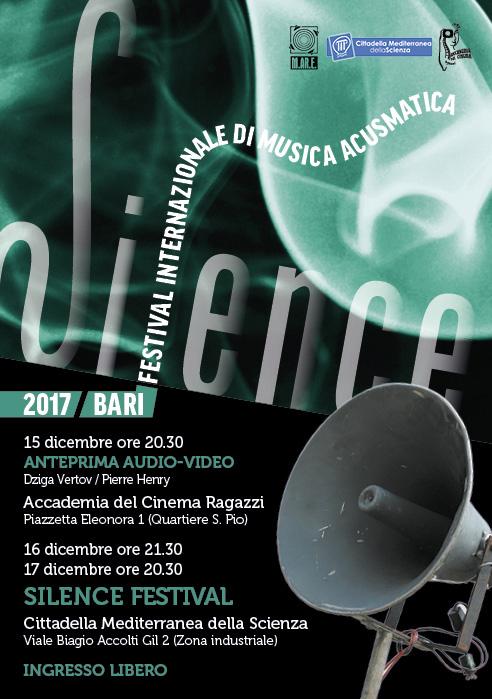 Comunicato stampa | Si svolgerà da domani a domenica, 15-17 dicembre, il nuovo Silence 2017, festival internazionale di musica acusmatica e sperimentale, International Festival of acousmatic and experimental music, evento a ingresso libero.
